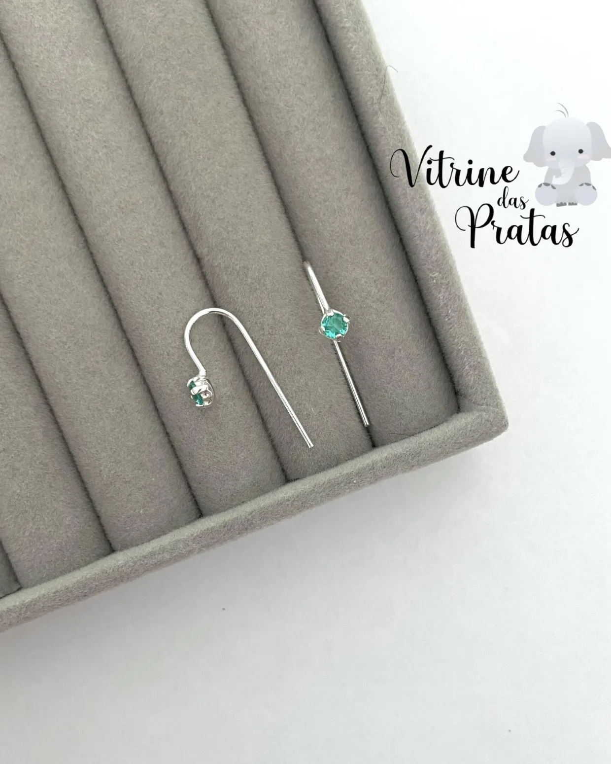 Brinco fio rígido modelo gancho com zircônia verde.