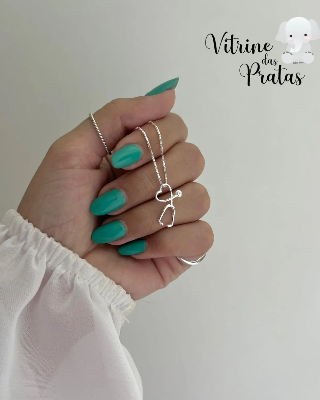 Colar com pingente de estetoscópio.