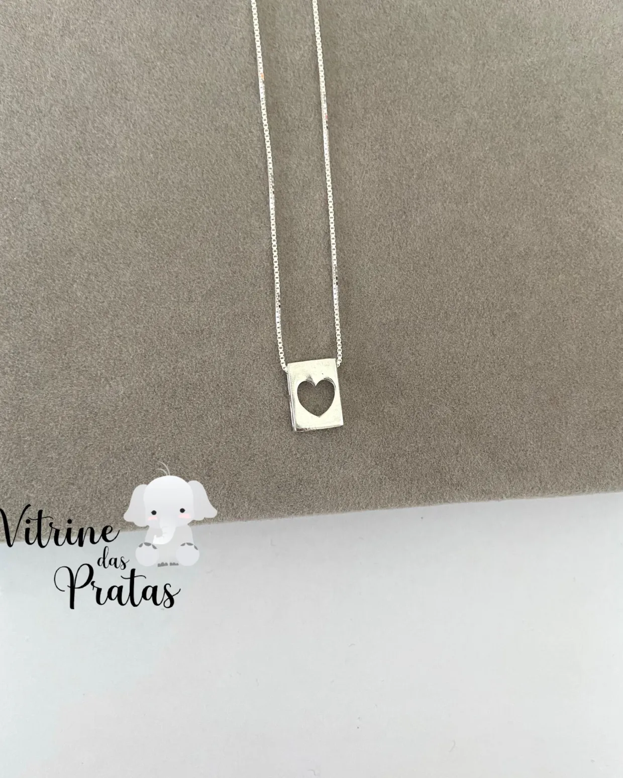 Colar Plaquinha Retangular com Coração Vazado