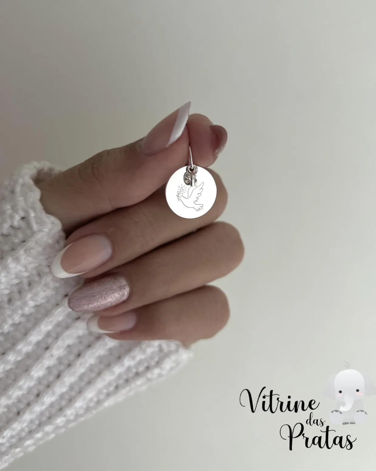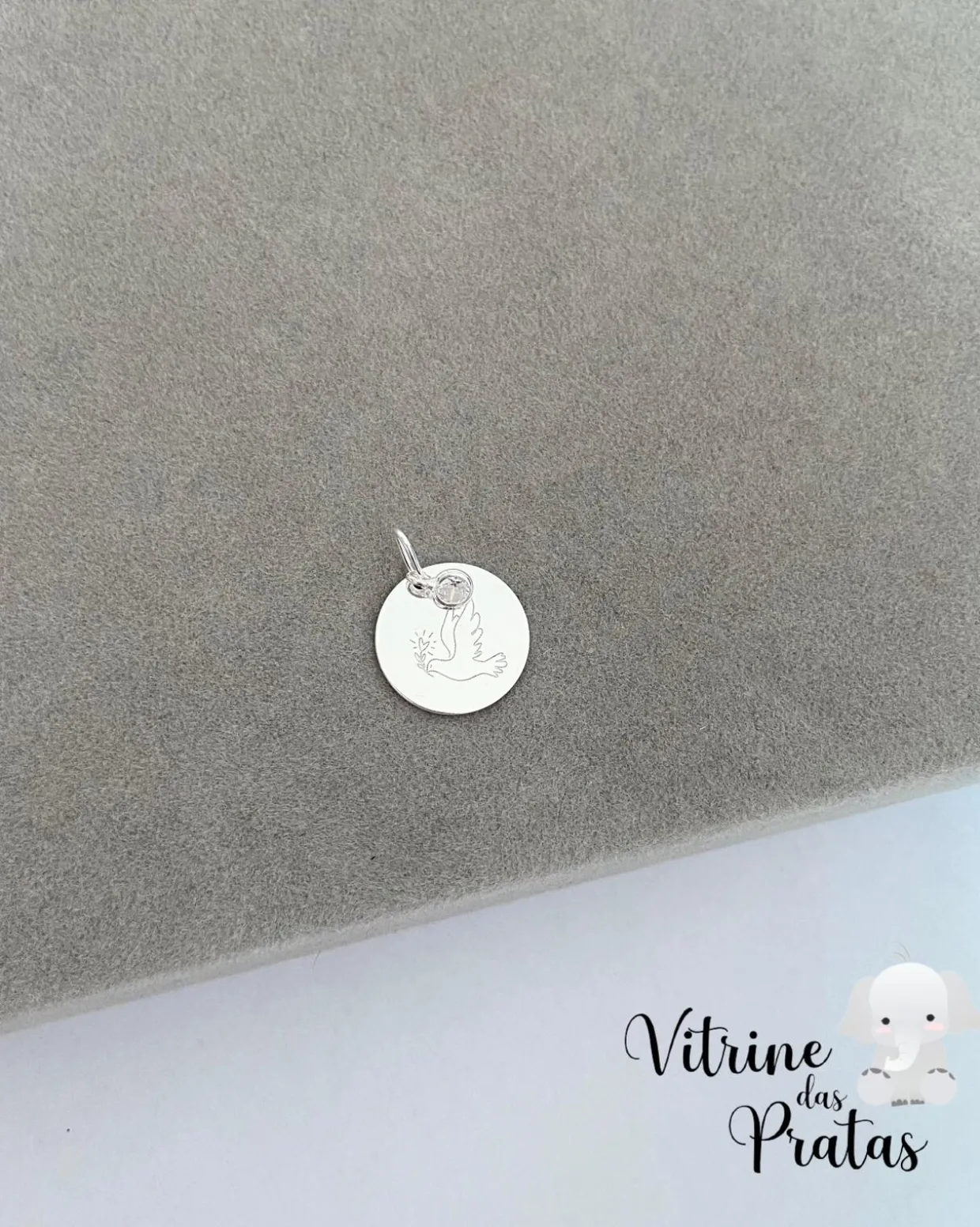 Pingente plaquinha Espírito Santo com ponto de luz cristal.