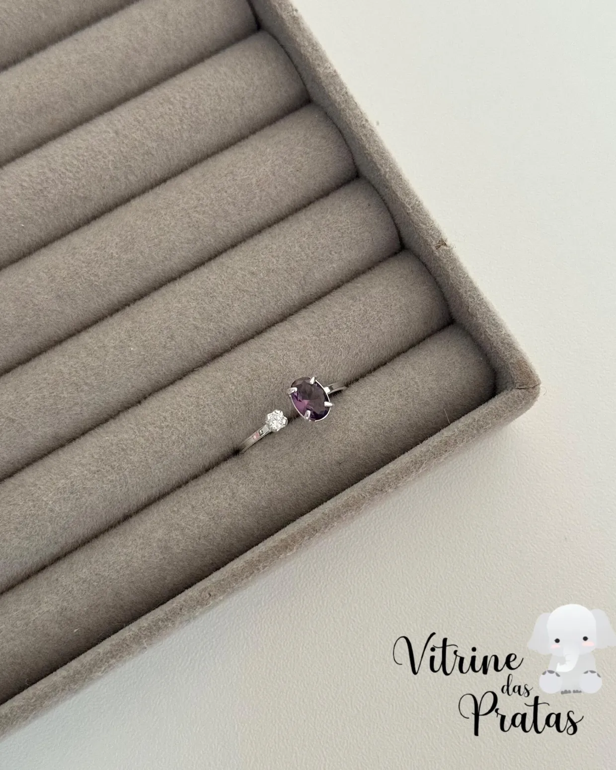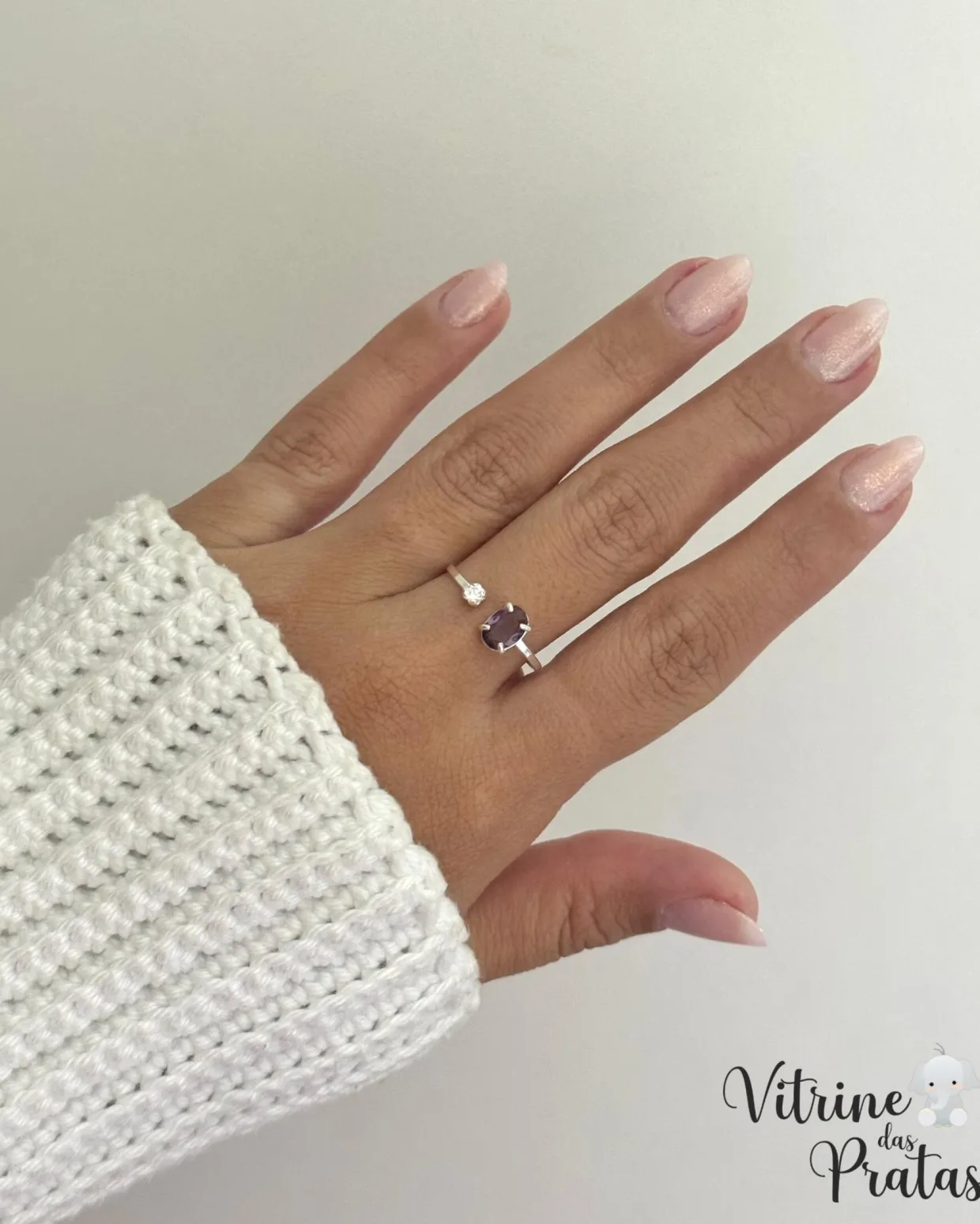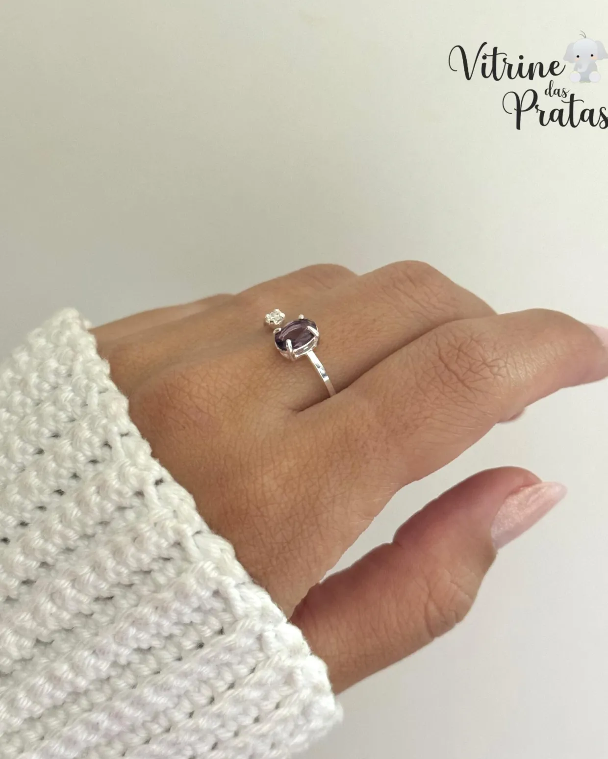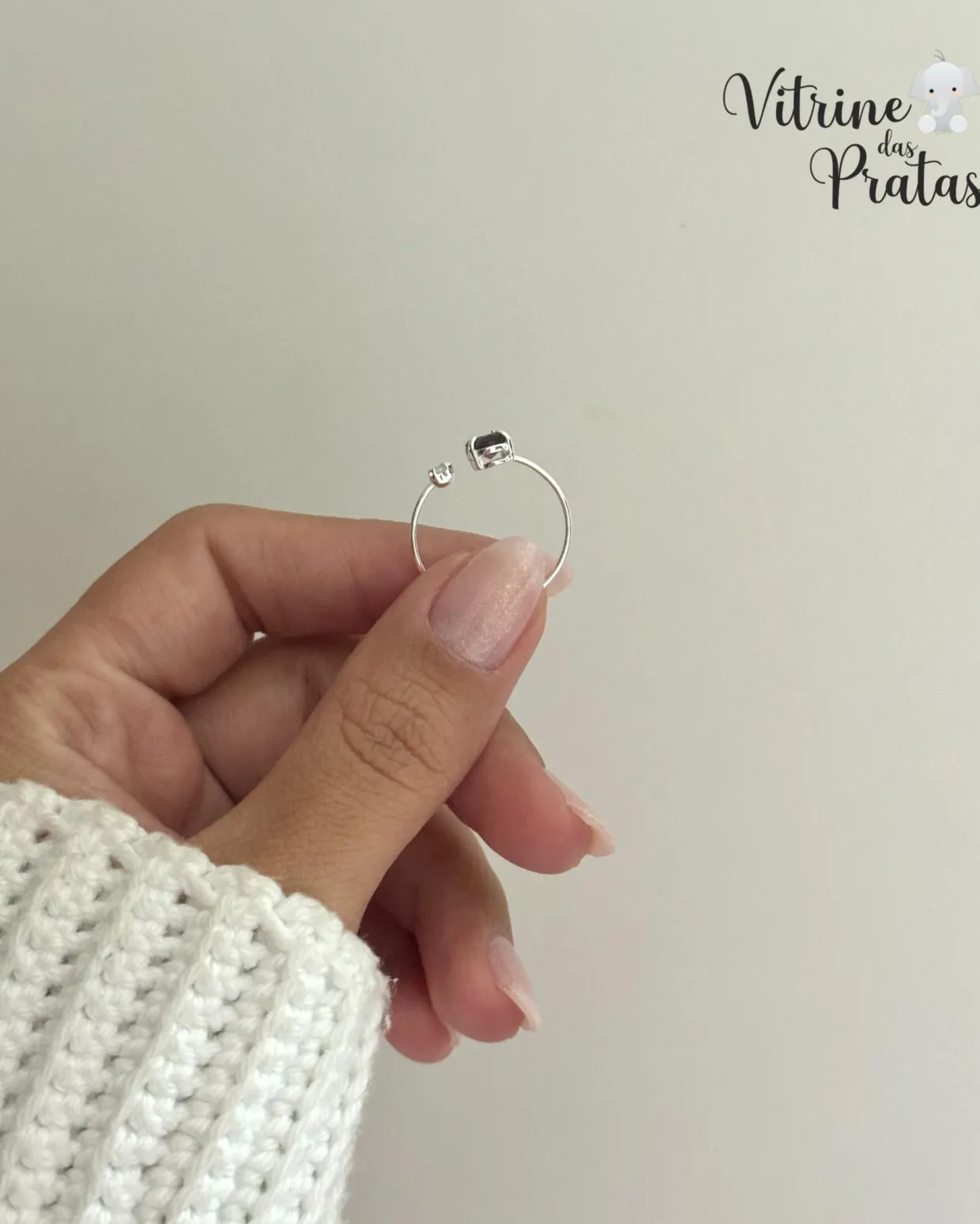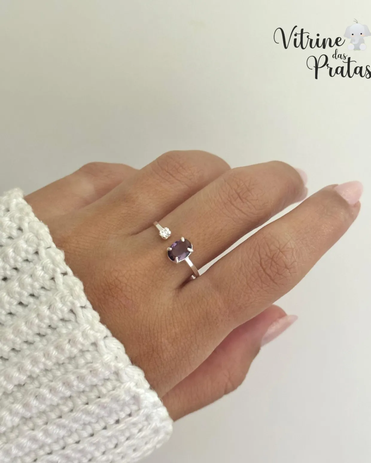 Anel regulável com zircônias grande e pequena.
