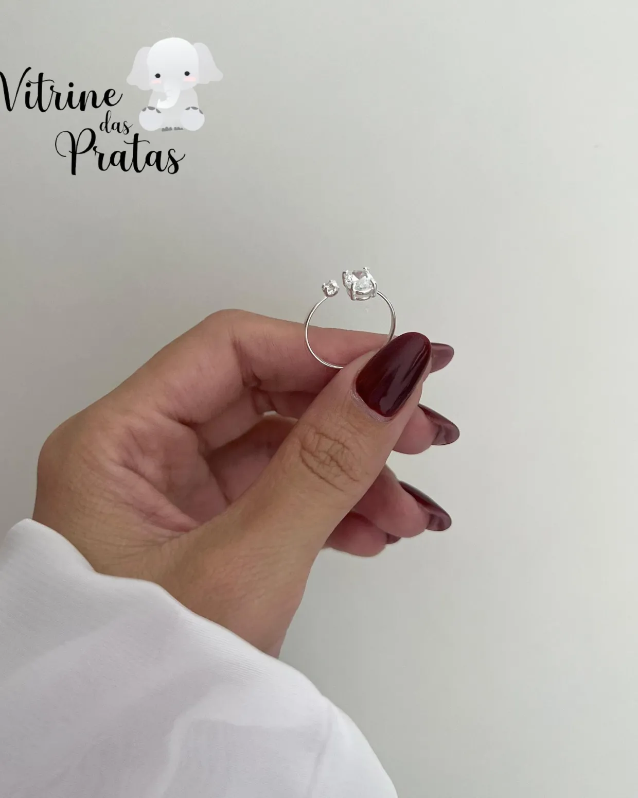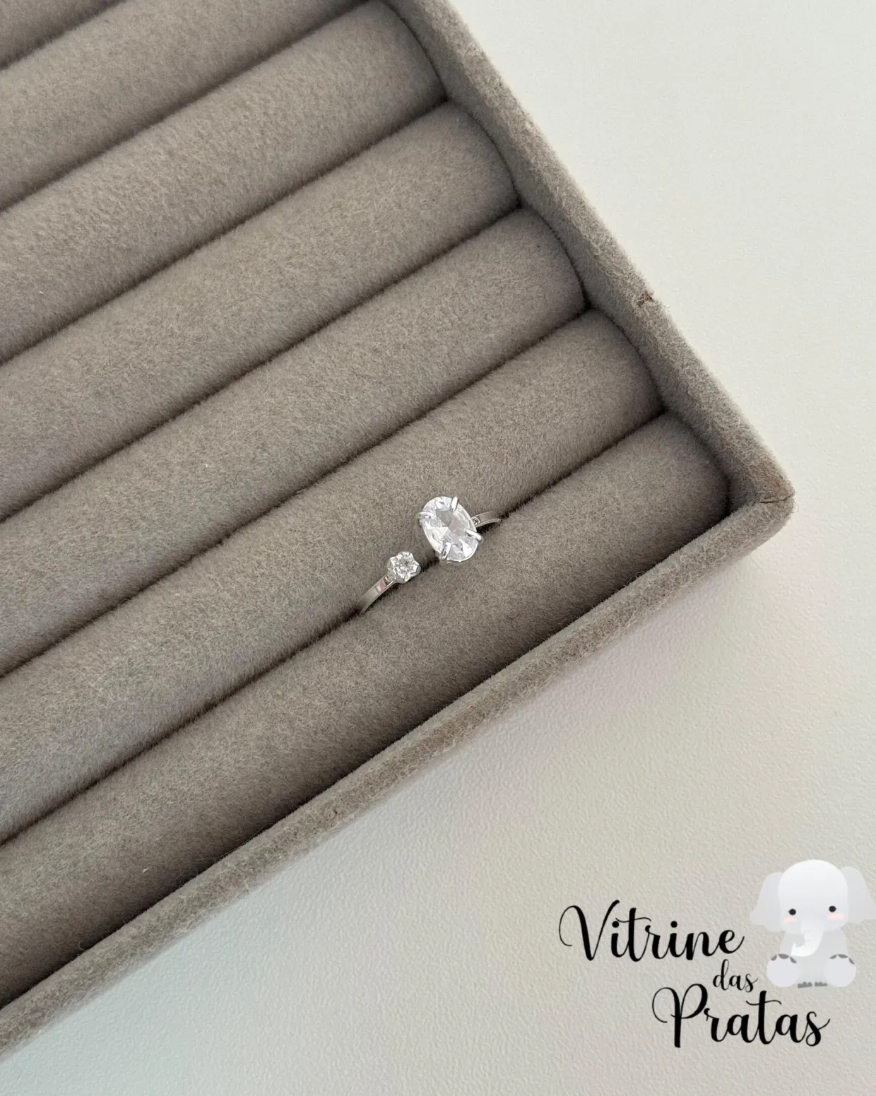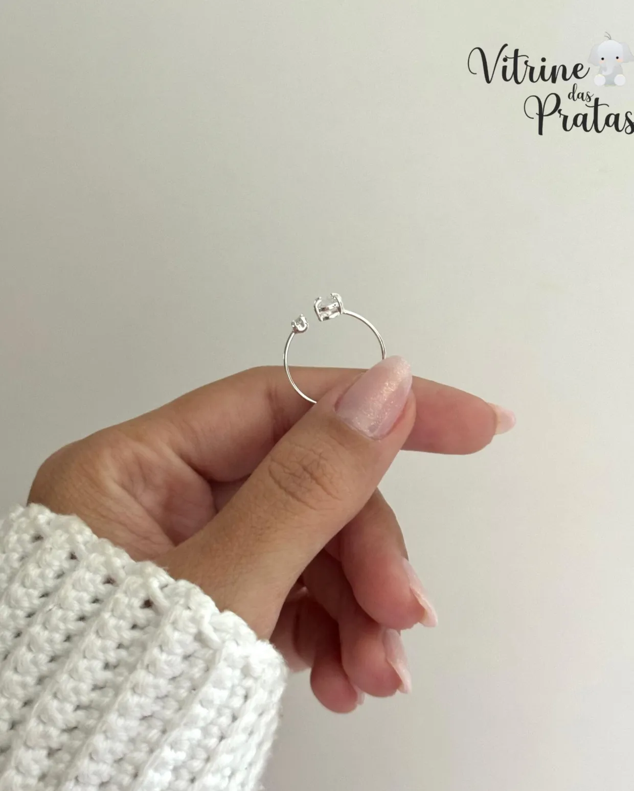 Anel regulável com zircônias grande e pequena.