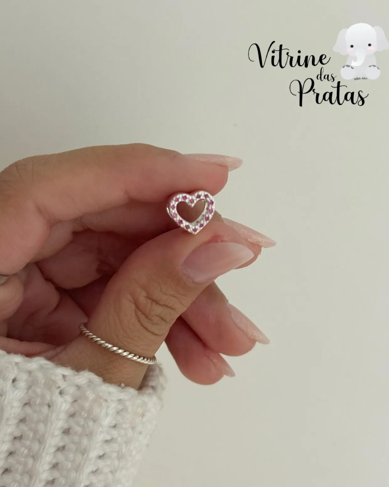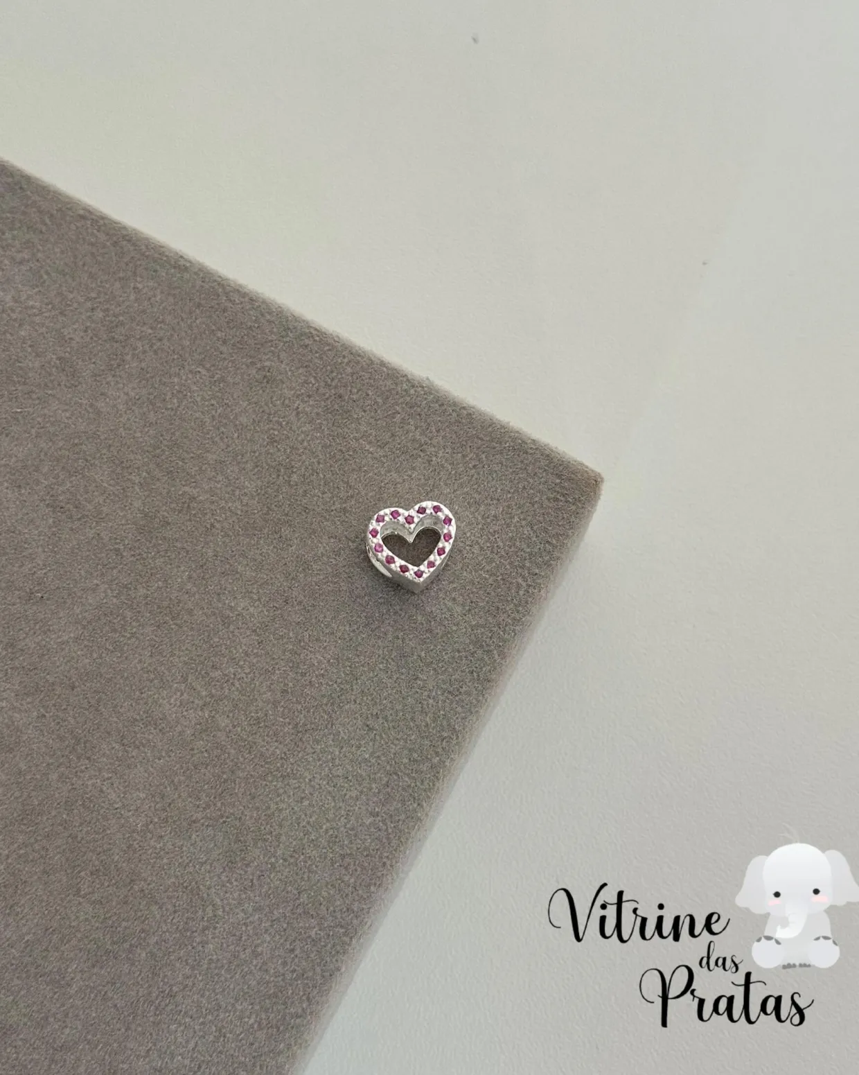 Berloque Separador Coração Cravejado Vazado Rubi