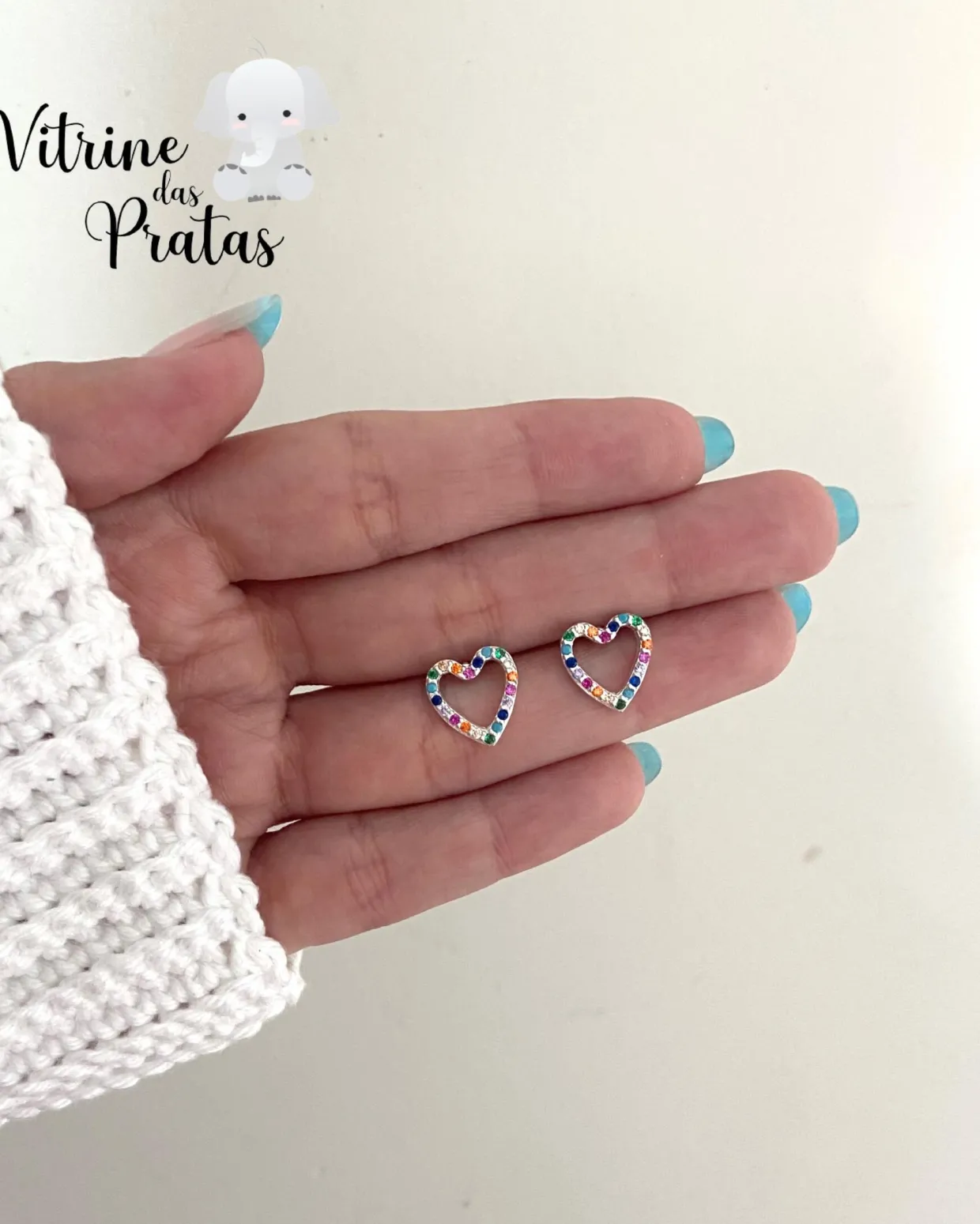 Brinco Coração Vazado Cravejado Color