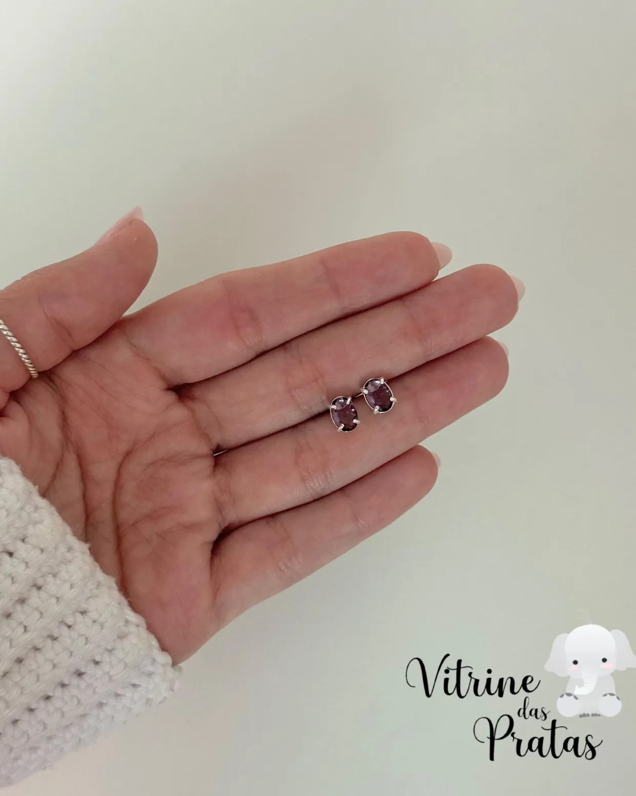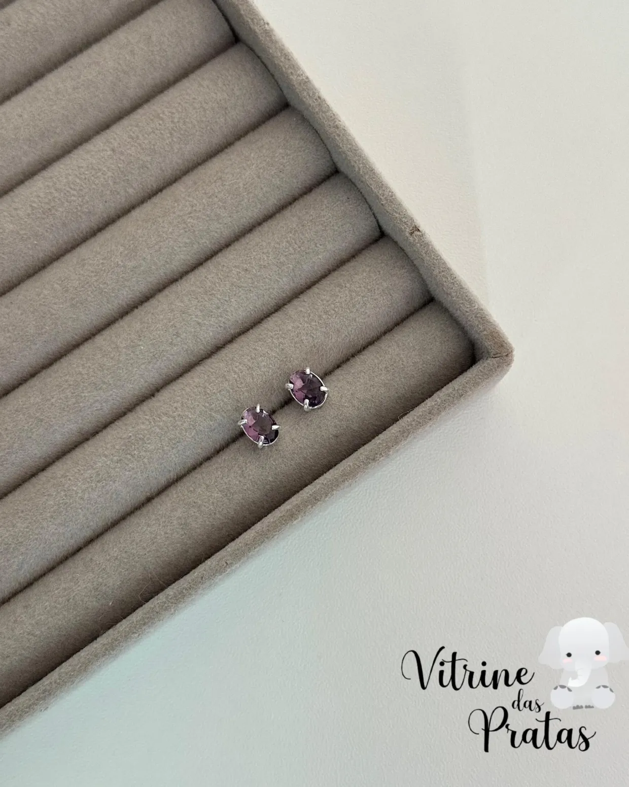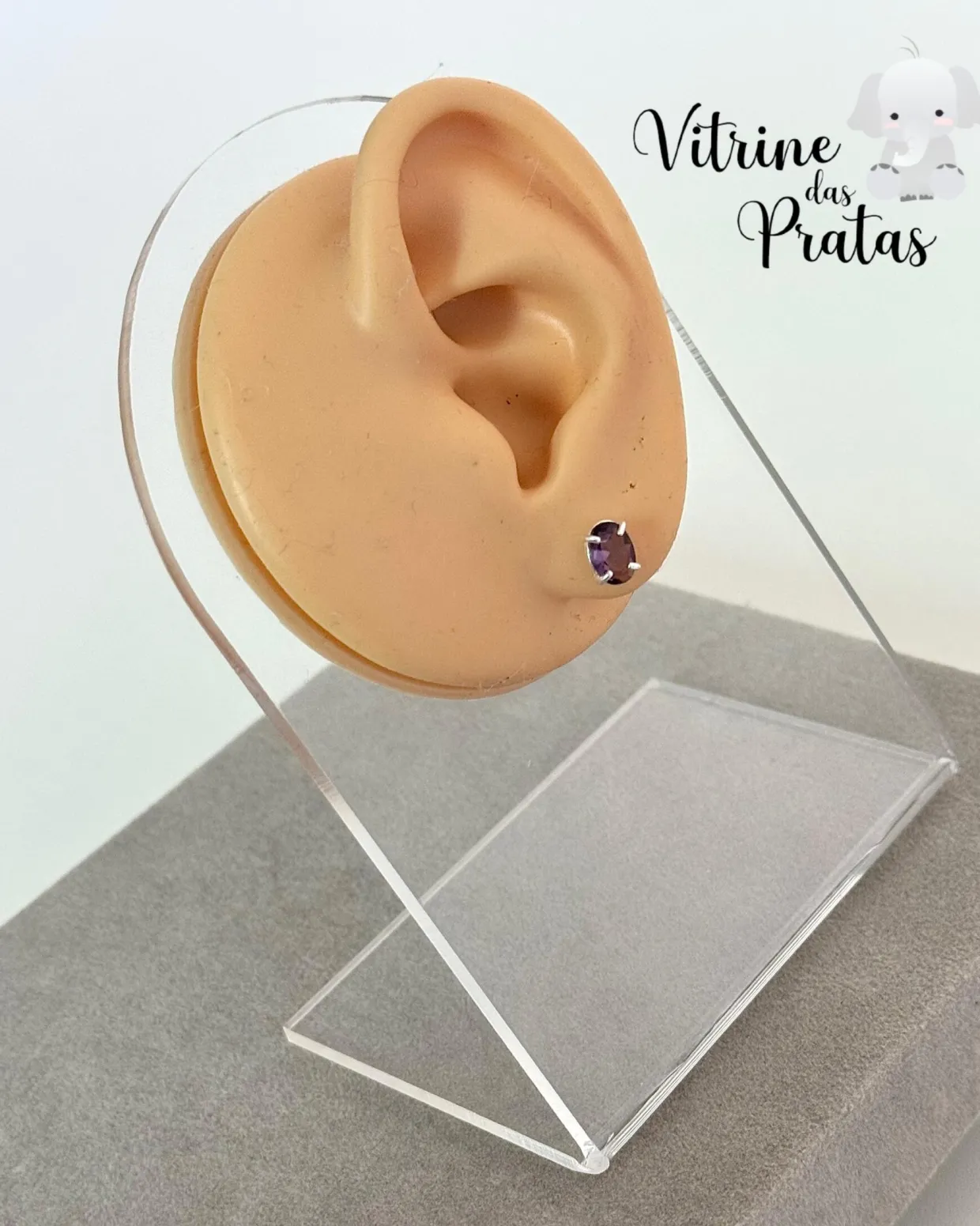 Brinco zircônia oval ametista.