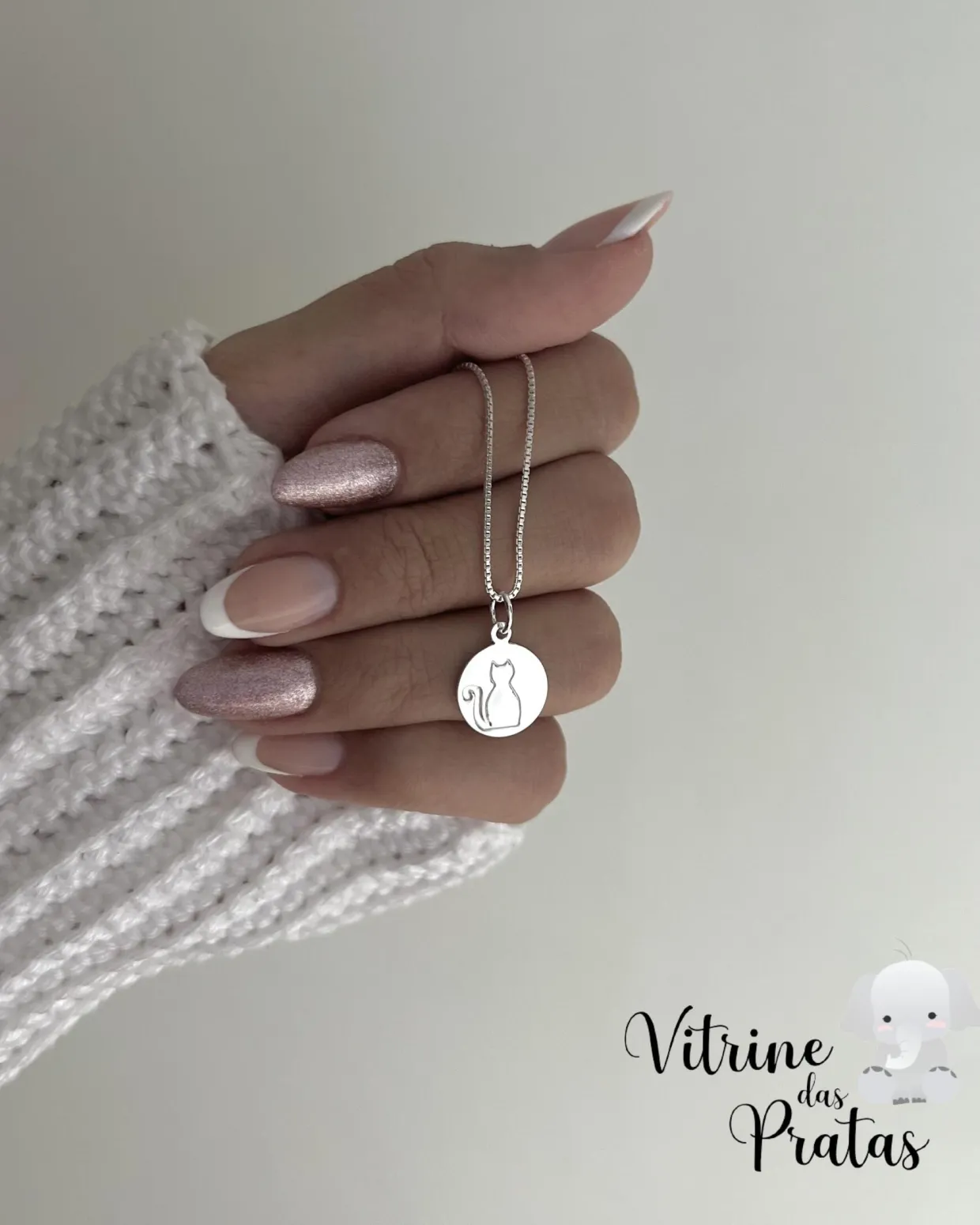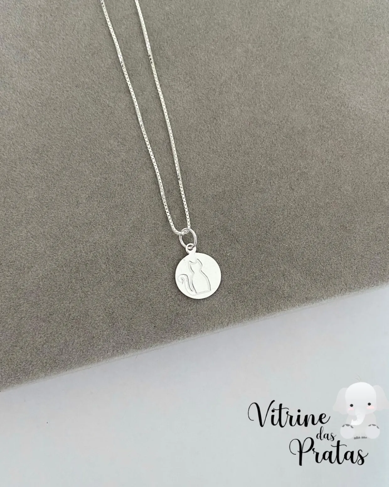 Colar com pingente de plaquinha com gato.