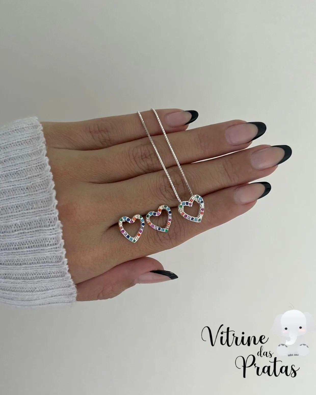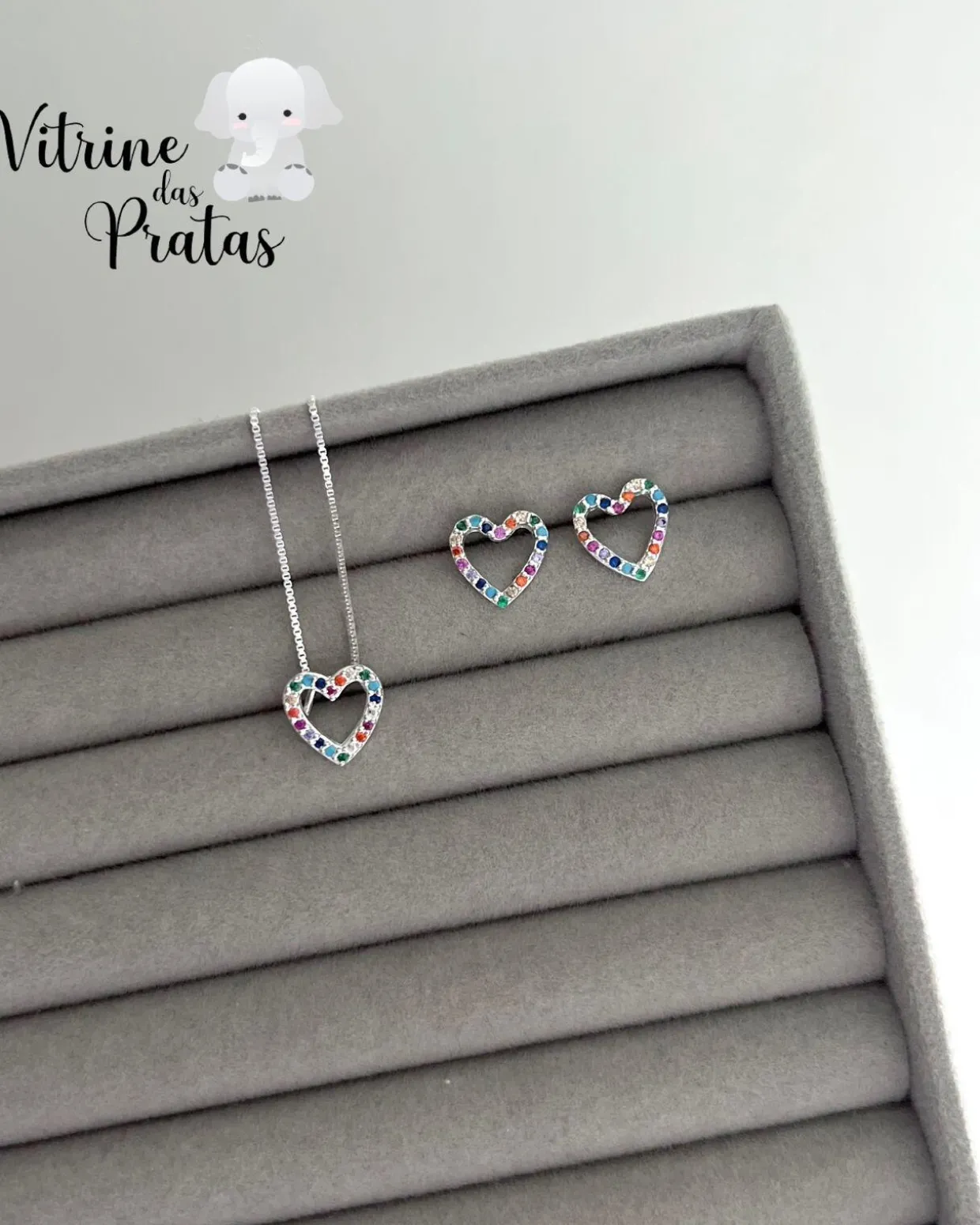 Conjunto coração vazado cravejado color.