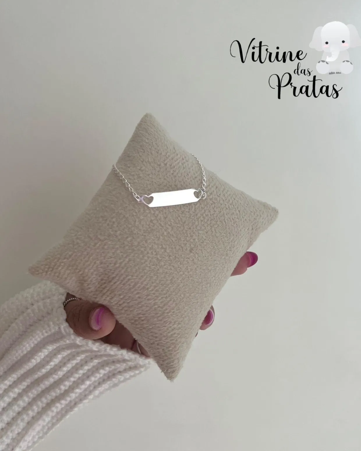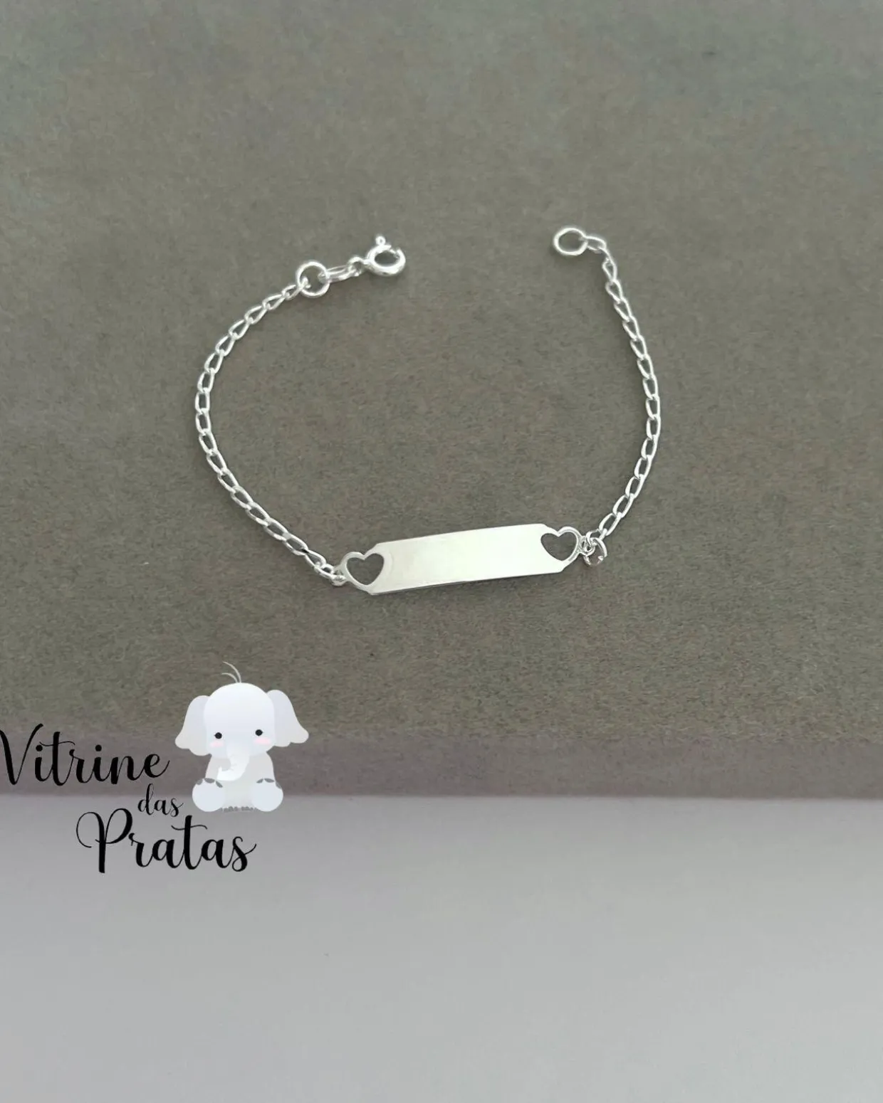 Pulseira infantil corações com plaquinha lisa.